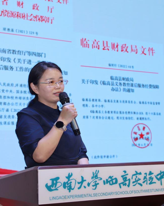 2024年3月27日下午,西南大学临高实验中学在杏坛举行了2024学年春季学期课后服务缤纷课程启动仪式。学校党支部书记、校长李英华、副校长符枫妹、全体缤纷活动课程导师以及初一、初二年级全体学生现场参加启动仪式。我校学生家长张耀钦、临高县耕读山房创始人陈江豪两位嘉宾以我校缤纷课程导师的身份全程参加活动。据悉,学校积极引进家长资源和社会资源,本学期共同开设了三门缤纷活动课程。